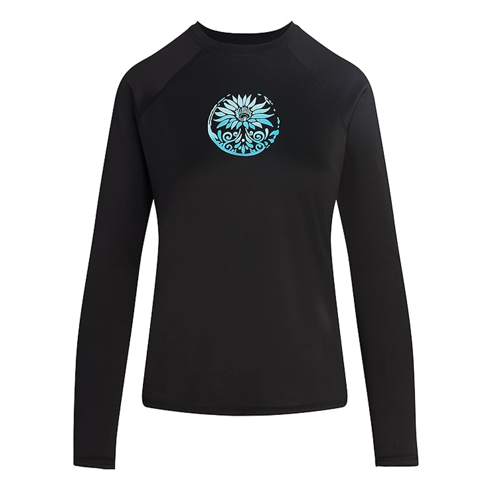 Short-sleeve rashguard with banded V-neckline, raglan seaming, and contrasting side stripe