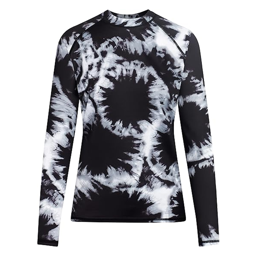 Short-sleeve rashguard with banded V-neckline, raglan seaming, and contrasting side stripe